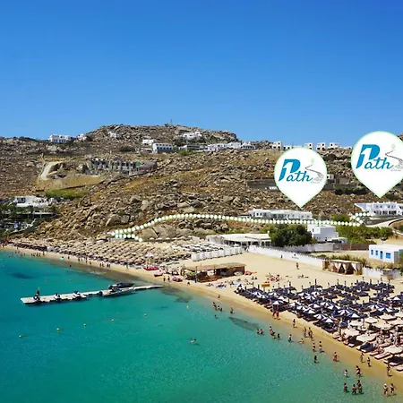 Az 1Path Thea Mykonos Super Paradise Beach House szálláshelyet kínál, és kocsival 7 percre van a Mikonosz Repuloter repülőtértől. Ennek a villának a szobái ülősarkot, TV-t és síkképernyős műholdas TV-t tartalmaznak.